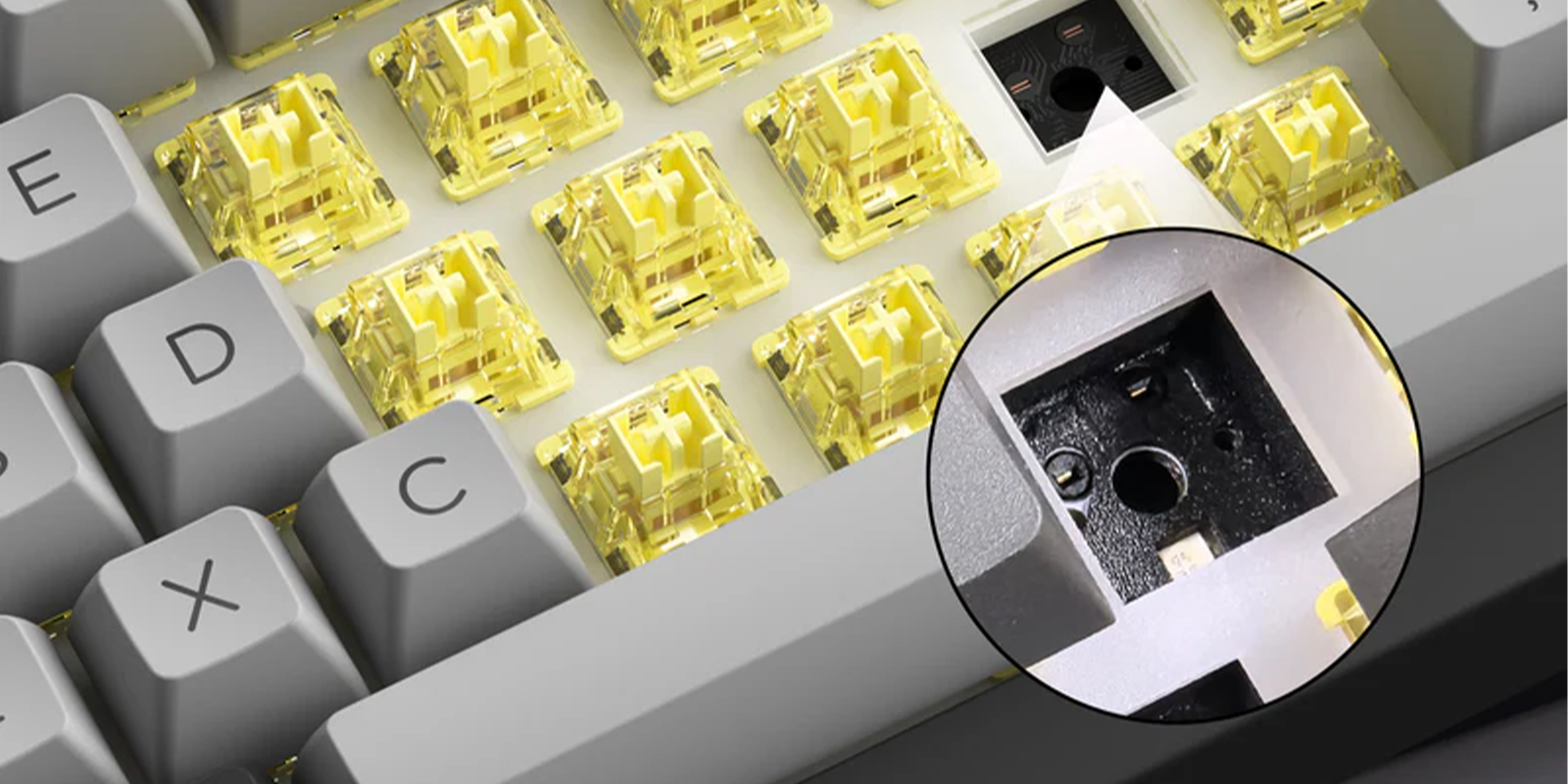 • FR4 เป็ยตัวเลือกเพลทเดียวที่มีการตัด Flex-Cut ทำให้ได้ฟิลลิ่งการกดที่นุ่มและมีความ Bouncy และสามารถ Built เป็นเสียงโทน THOCK ได้ง่าย