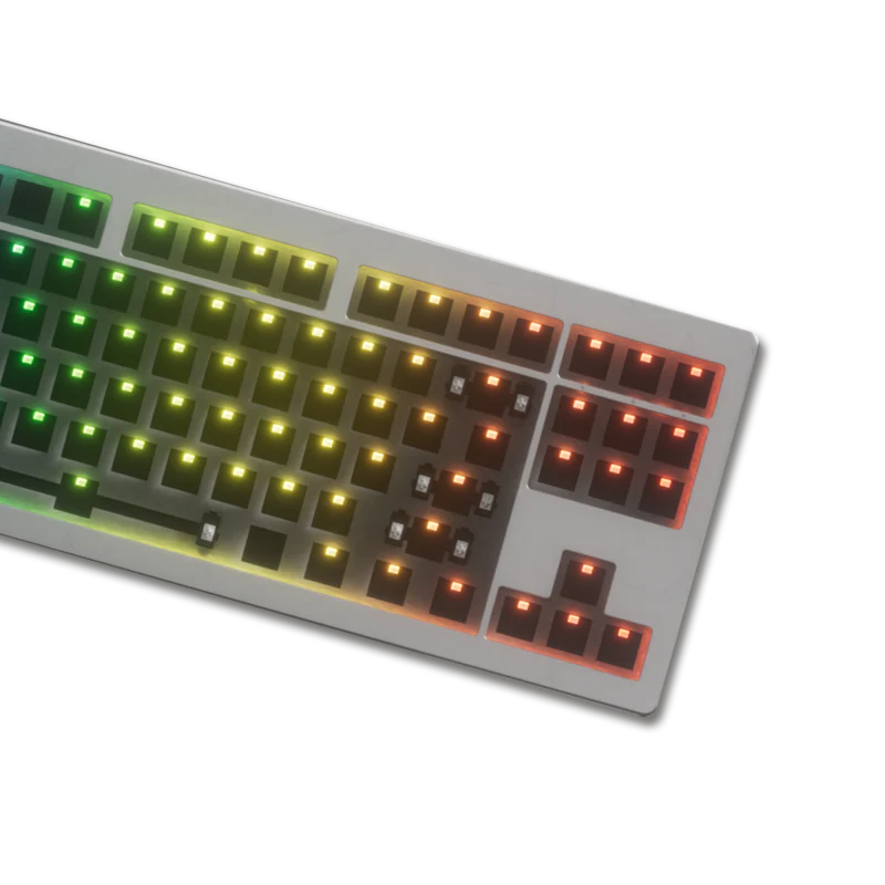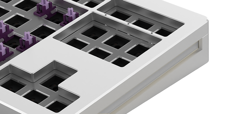 - FR4 เป็ยตัวเลือกเพลทเดียวที่มีการตัด Flex-Cut ทำให้ได้ฟิลลิ่งการกดที่นุ่มและมีความ Bouncy และสามารถ Built เป็นเสียงโทน THOCK ได้ง่าย