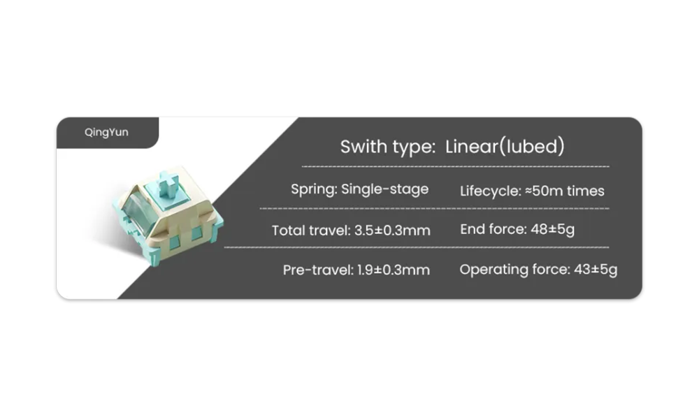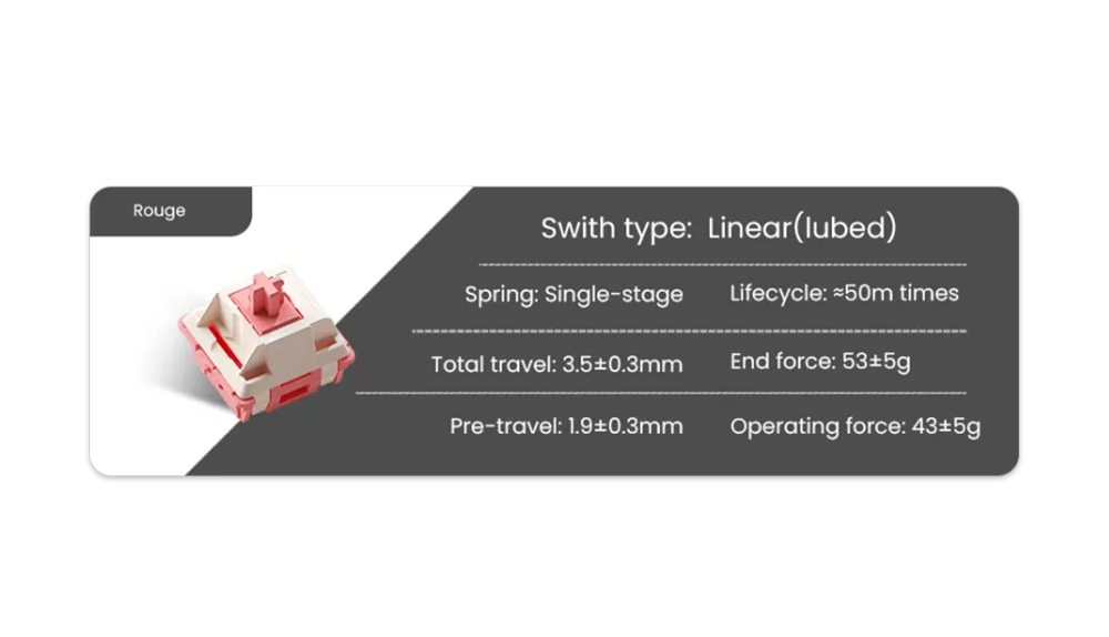 Hotswap Sockets: Yes | N-key Rollover Support: Yes | Switch Mount Type: Plate | Plate Mount: Leaf-Spring