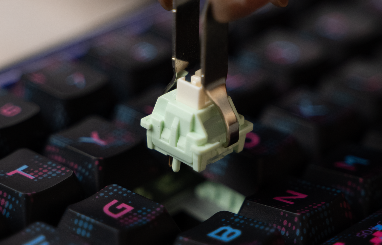 - FR4 เป็ยตัวเลือกเพลทเดียวที่มีการตัด Flex-Cut ทำให้ได้ฟิลลิ่งการกดที่นุ่มและมีความ Bouncy และสามารถ Built เป็นเสียงโทน THOCK ได้ง่าย